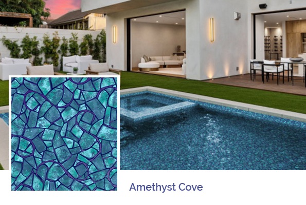 Inspired by hidden island inlets, this liner pairs the fresh brilliance of robin’s egg teal with iridescent amethyst undertones. The result is water shimmering like jewel tones in a secret abandoned tropical cove, inviting relaxation, sunshine, escape. Elegant and unique, Amethyst Cove transforms every swim into a luxurious soak in the sun.