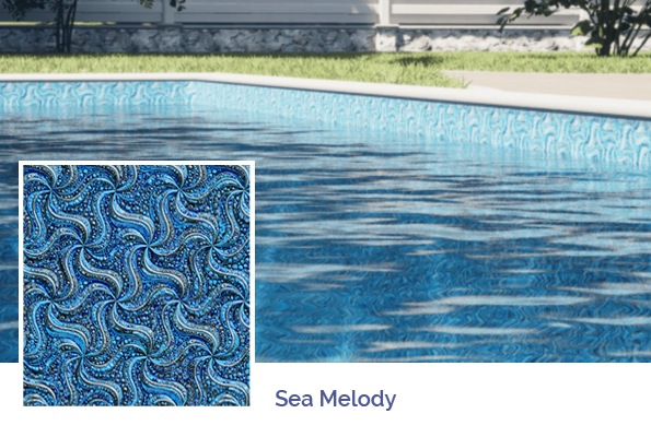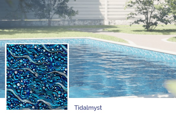 Captures the effortless beauty of the open ocean, with deep blue tones accented by soft whitecaps and delicate swirls of bubbles. Its design evokes the bluest warmest waters of summertime, creating a sense of movement and tranquility with every glance. Unique and one-of-a-kind, this liner transforms any pool into a breathtaking seascape.